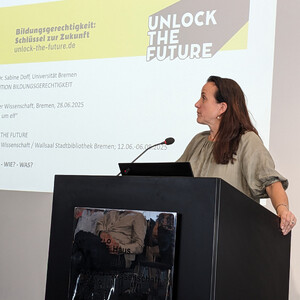 Im Rahmen der ChancenWerkstatt diskutierte Prof. Dr. Sabine Doff, Initiatorin von „Unlock the Future“, gemeinsam mit Vertreter:innen aus Bildung, Politik und Stiftungen über die Chancen und Perspektiven für Bildungsgerechtigkeit. Im Mittelpunkt standen die 43 Schulen in Bremen und Bremerhaven, die Teil des neuen Startchancen-Programms sind. Ziel ist es, die Bildungsbedingungen nachhaltig zu verbessern und allen Kindern und Jugendlichen gerechte Chancen zu ermöglichen. Mehr Informationen zum Startchancen-Programm.