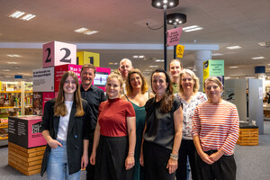 Projektteam von „Unlock the Future“, bestehend aus Mitgliedern der Gruppe für Gestaltung, Dr. Karoline Thorbecke und Prof. Dr. Sabine Doff bei der Eröffnung in der Stadtbibliothek Bremerhaven.