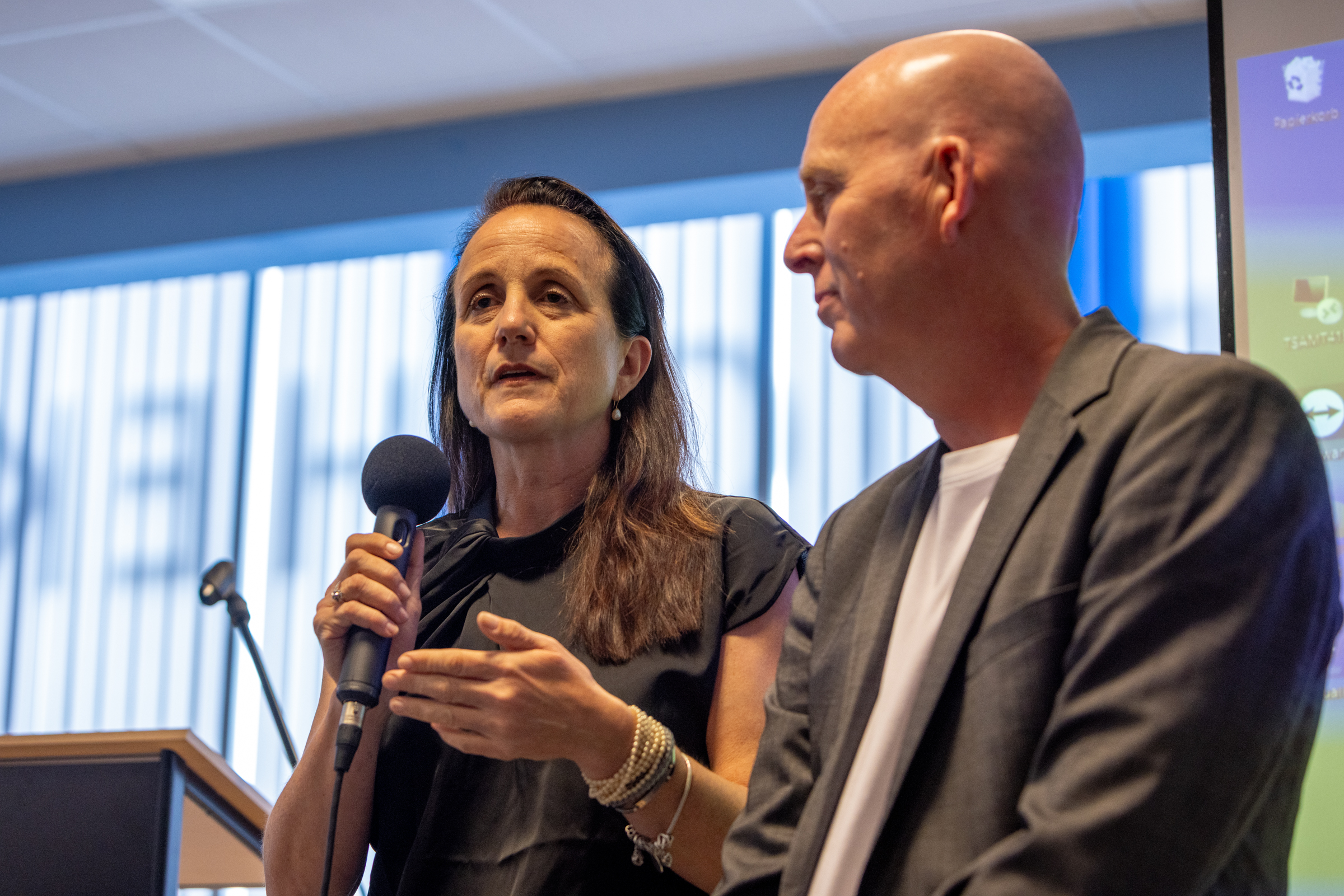 Prof. Dr. Sabine Doff, Autorin der Open Access-Publikation und Initiatorin des Projekts „Unlock the Future“, und Hanke Homburg, Geschäftsführer der Kommunikations- und Designagentur GfG / Gruppe für Gestaltung, die für die Entwicklung und Umsetzung der Ausstellung, der Website und aller Medien zuständig war.